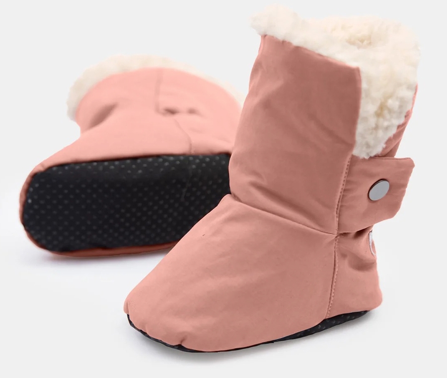 When it’s really cold outside, tiny feet need big-time booties to stay warm in the winter time. Enter our booties—designed for walkers and pre-walkers featuring the grippy anti-slip soles. The insulation is lightweight, but retains heat thanks to the ultra soft sherpa lining and the 3000MM water repellent outer shell. And they slip on in seconds—no tugging necessary. Just pull gently to secure over leggings, dresses, jeans, or tights. Your child can even wear them in their 7AM stroller footmuff on your daily strolls!