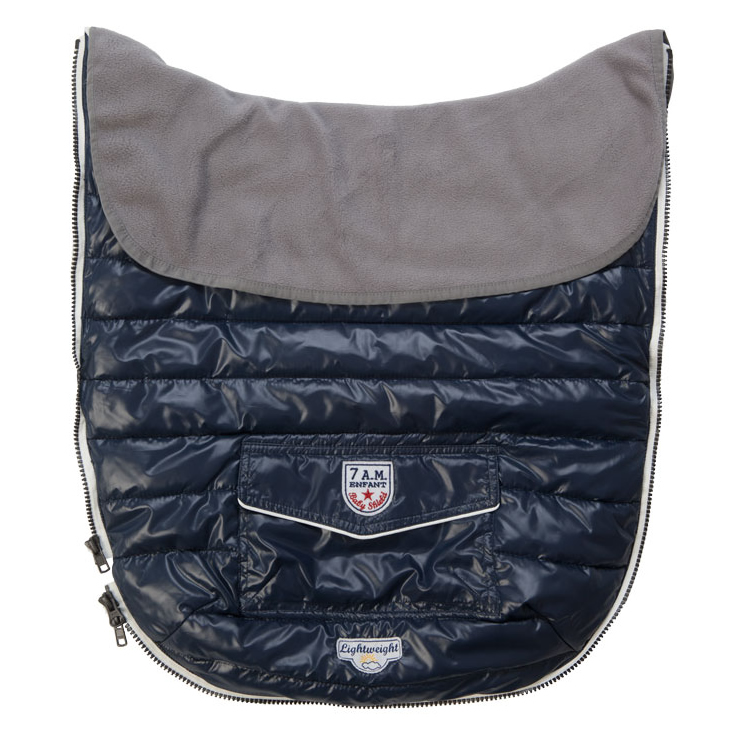 Similar in style to the Le Sac igloo®, the Baby Shield features two detachable front covers that can be secured separately to the car-seat or stroller as a blanket via an elastic pouch and hook & loop straps.