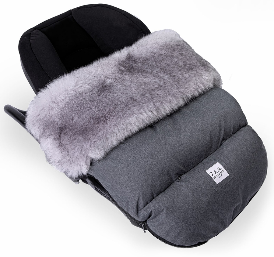 The outer shell is water repellent, and the poly insulation and plush lining is extra soft— effectively blocking out any cold air. On warmer days, remove the faux fur trims for a lighter-weight footmuff. Bonus: the entire thing (except for faux fur trims) is machine washable and dryable.