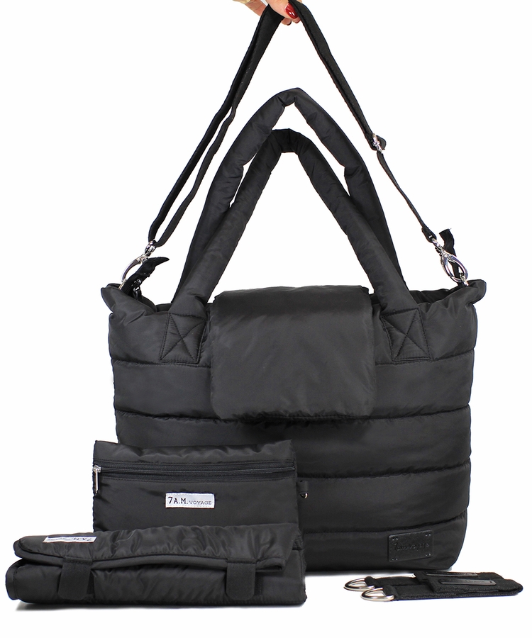 The Capri Bag is a diaper bag when you want it to be, and a chic tote when you're out and about. Its compact shape makes it the perfect everyday carryall. Created from a lightweight nylon material, the Capri is equipped not only with multiple interior pockets to keep you organized, but also a wallet pouch you can use for your make up or any other baby knick knacks. With the Capri Bag you'll be sure to travel light with babe and of course, on trend with all of your essentials at hand.