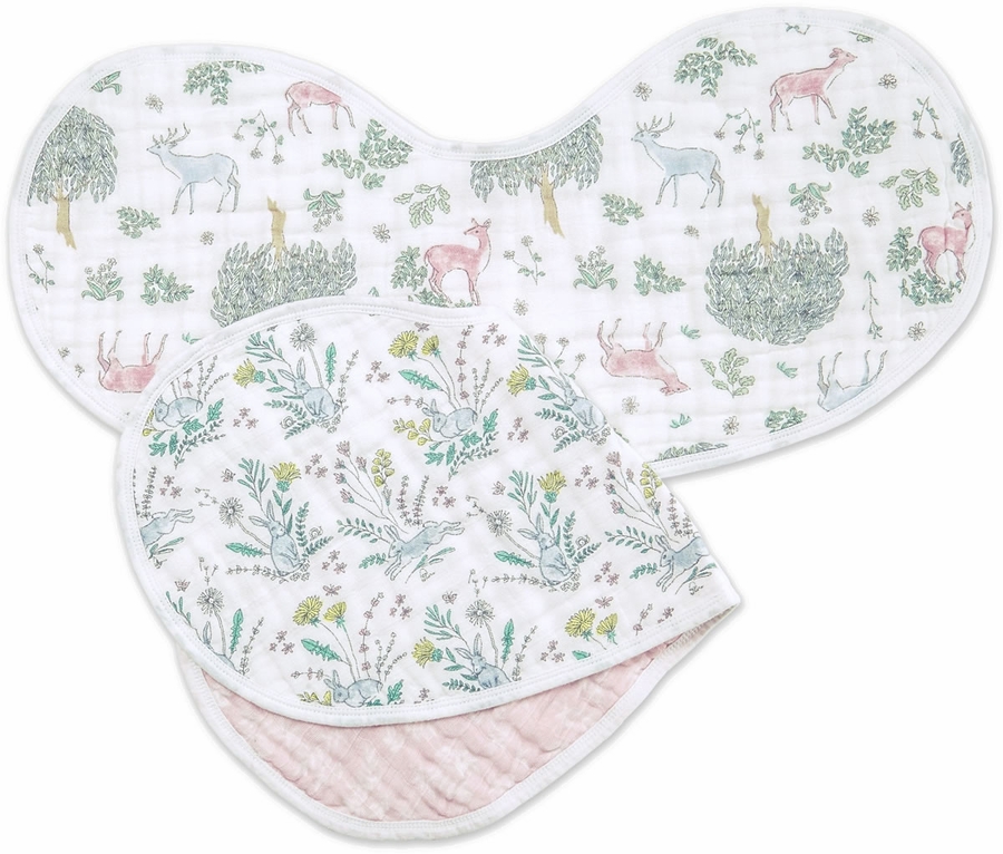 Thanks to its patented design, the 100% cotton muslin classic burpy bib keeps you and your little one clean. The generously sized, absorbent fabric drapes over your baby’s shoulders and snaps at the back for a breathable bib that catches the sneakiest of side dribbles. It also doubles as a no-slip burp cloth with its kidney shape that sits just so right over your shoulder. Includes two 9" x 23.5" muslin bibs.