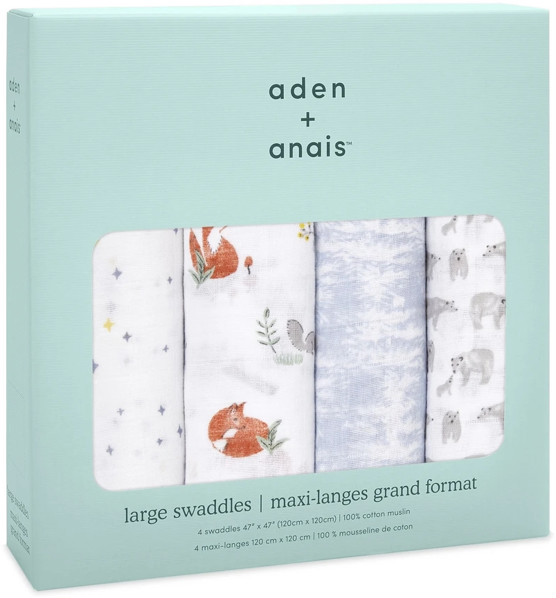• Size: four 47 in x 47 in cotton muslin swaddles