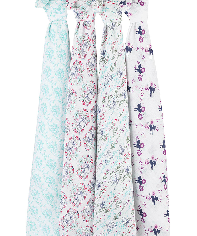Combining the magic of muslin with the wonder of Disney, these swaddles capture the enchanting world of Bambi. Breathable, versatile and soft as a mother's touch, our 100% cotton muslin swaddles simplify what can be a chaotic time. No matter how you're using them?stroller cover, burp cloth or nursing cover to name just a few?they surround your little one in comfy goodness round the clock.
