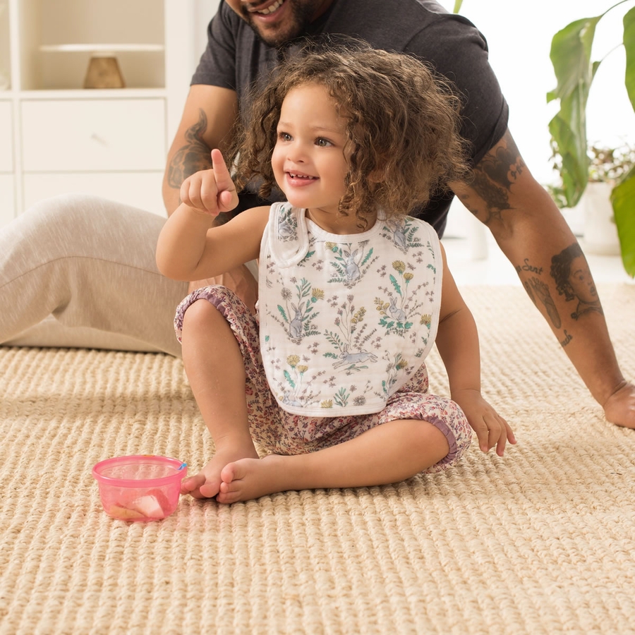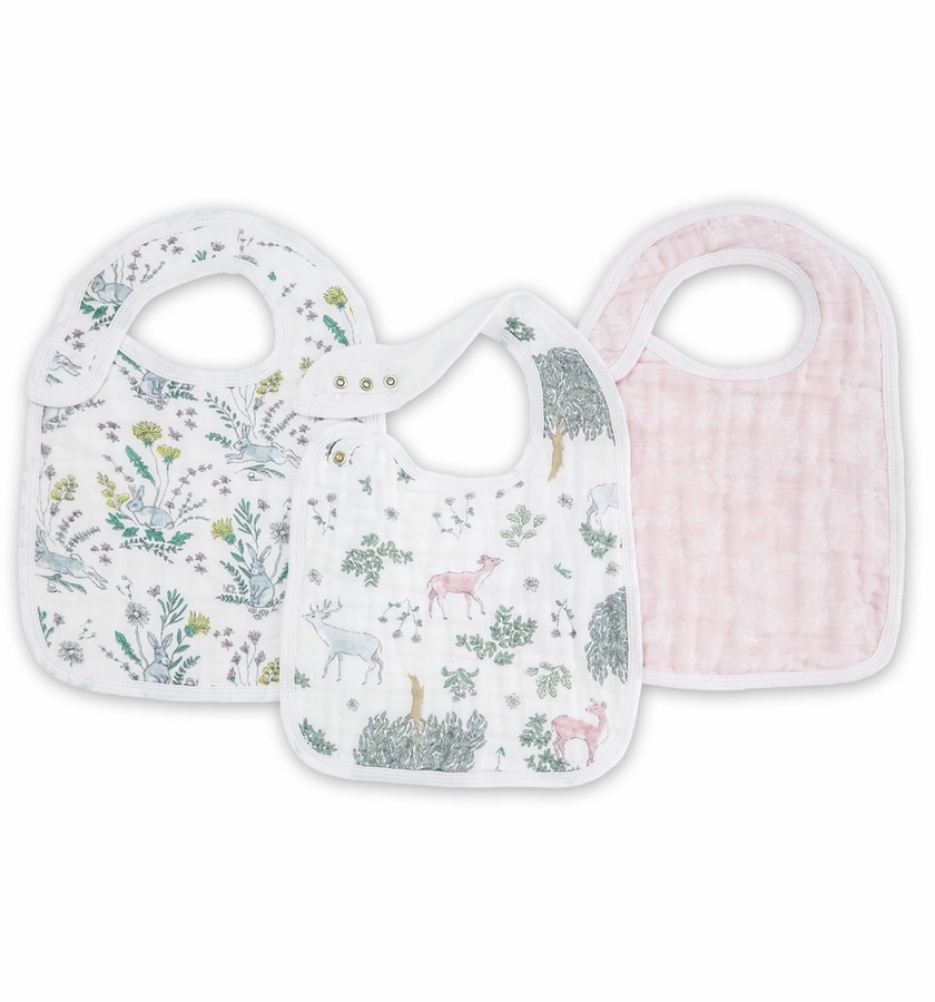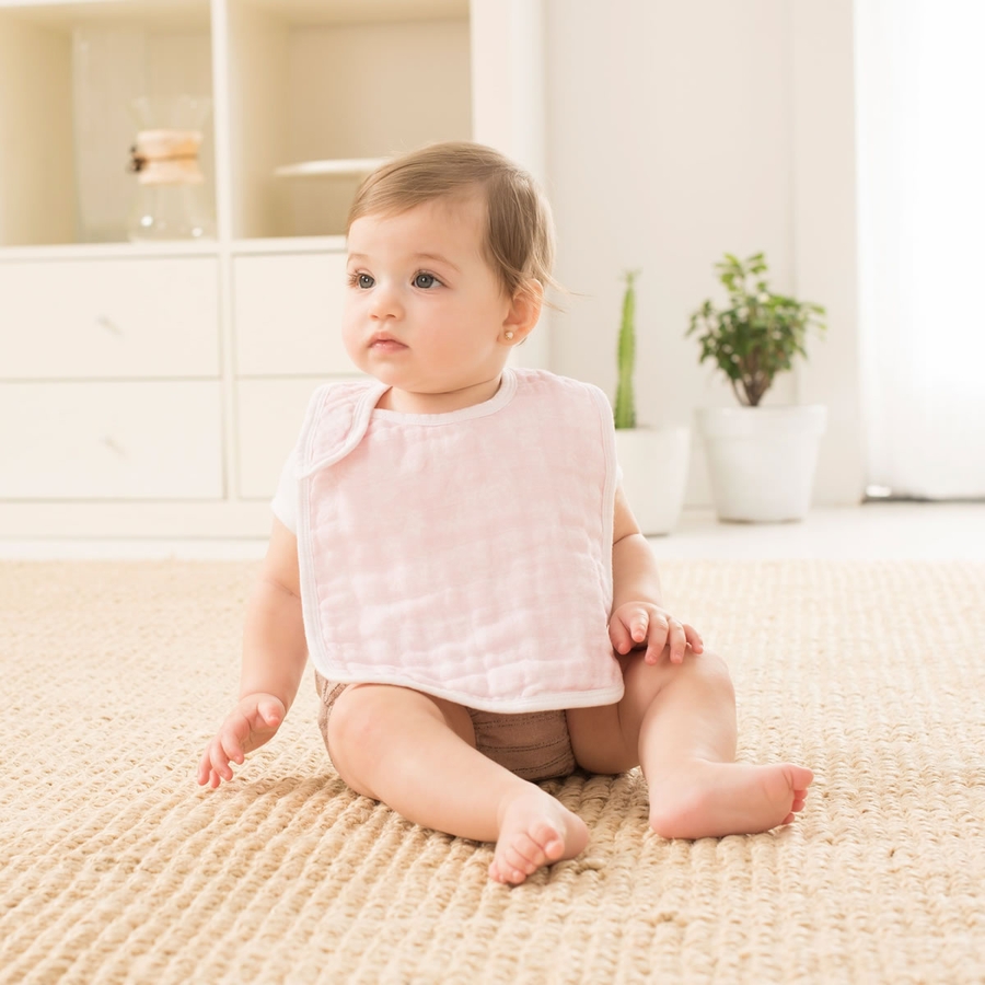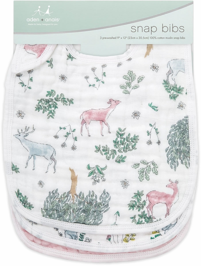 The 100% cotton muslin classic snap bib features three snaps conveniently located in the front for an adjustable fit and easy fastening. And not to worry, the messier it gets, the better. The muslin is pre-washed so it’s super soft from the start and gets even softer with each wash. Finally, a bib that grows with your baby and lasts through countless washes! Set of three 9" x 12" muslin bibs.
