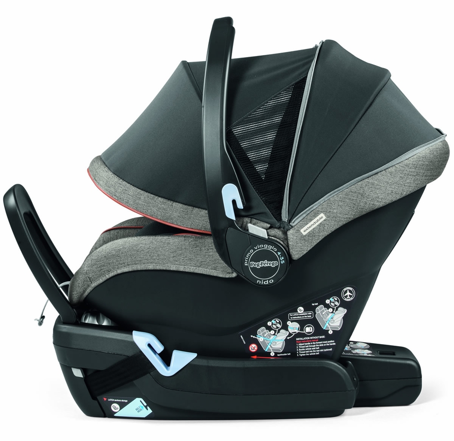 The base for the Primo Viaggio 4-35 Nido is equipped with the ?Right Tight System,? which easily and securely locks the base in place for added stability with either the LATCH strap or the vehicle seat belt. The base has color coded belt paths, which act as a guide for the vehicle seat belt routing. A modern design with a rounded-shape bottom allows for a better fit and is gentle on any vehicle upholstery.