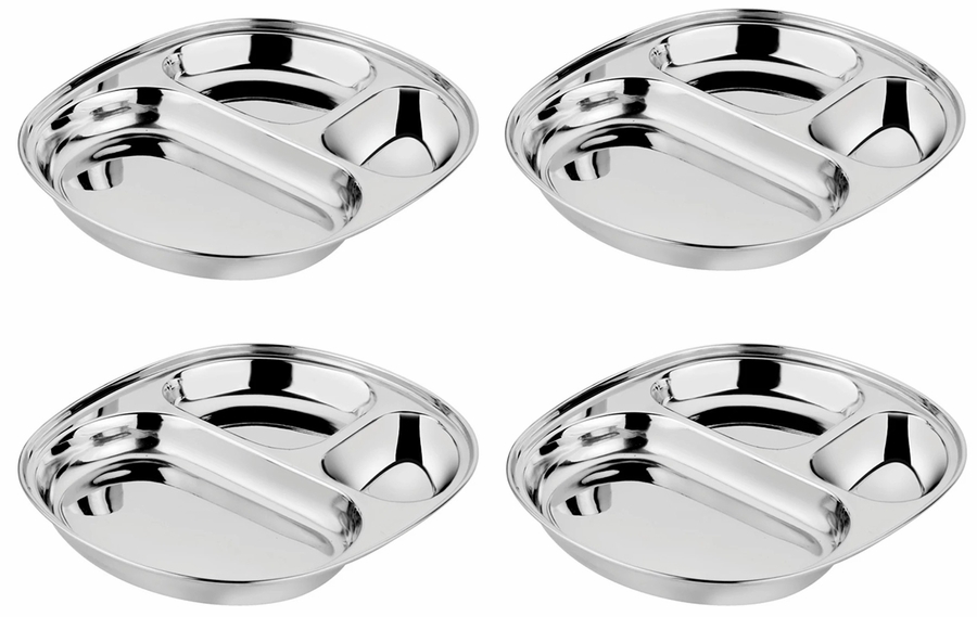 Ahimsa Stainless Steel Balanced Bites Plates (Set of 4) - Classic