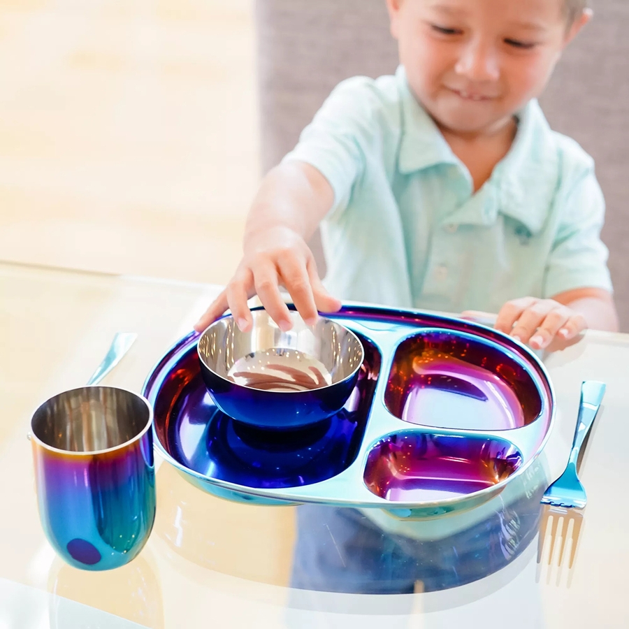 Ahimsa Stainless Steel Mindful Mealtime Set - Iridescent Blue