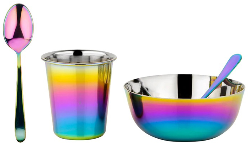 Introducing solids? Our Starting Solids Set is perfect for babies' first foods whether parent-assisted spoon feeding or baby-led feeding. Babies and toddlers love the sensory exploration with bright colors, cool touch and shiny finish - our little ones love to see their reflections.