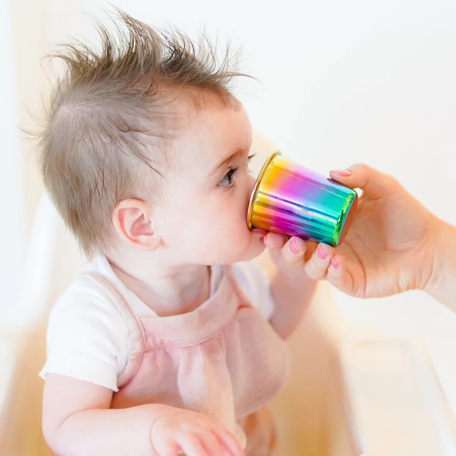 - The training cup with a rolled edge allows infants and toddlers to practice skills early without big spills or broken dishes. The American Academy of Pediatrics recommends introducing a cup at 6 months.
