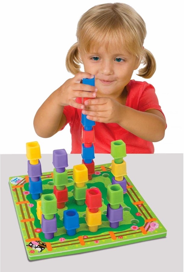 Create a beautiful, 3D farm with Peg & Layer Farm! Stack the foam farm-themed pegs on top of each other. Create a farm world of fun! Foam peg board is decorated like a green farm pasture! A wonderful way to teach young children counting. Part of the Little Hands Skill Builder series by ALEX. Ages 2+ years.