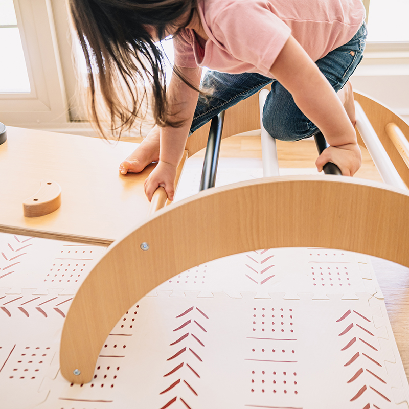 Our 3-piece Mini Mighty Indoor Gym is the perfect alternative to the playground. Comes complete with slide that reverses to climbing wall, ladder, and mini monkey bars. Crafted of solid, sturdy beach wood, this beautiful little gym will help encourage physical activity, balance and hours of fun for your mighty minis. Your kids will be all over it!