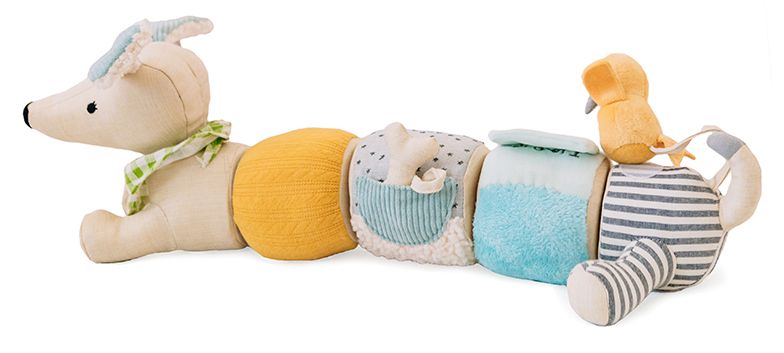 Our Pull Apart Pup is the perfect puppy pal for your little one. Sweet graphics and lots of textile details will delight your child with its tactile feel and fun activities. 5 pieces stick together and pull apart easily, and the littles can experiment with different configurations. Tons of fun from head to tail!