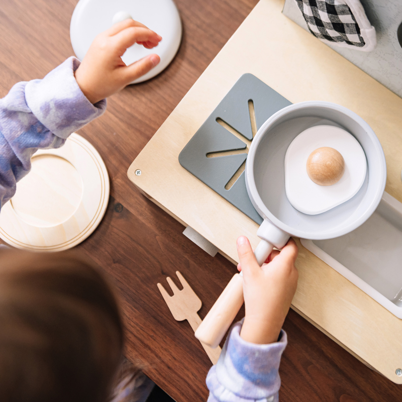 Let’s lay it all our on the table—with our delectable Table it Breakfast Play Food. 12 piece set includes egg, bagel, sausage, French toast, orange, salt & pepper shaker, and tray. Pair with our Table it Kitchen or our other play food sets, and create a yummy meal. They say breakfast is the most important meal of the day!