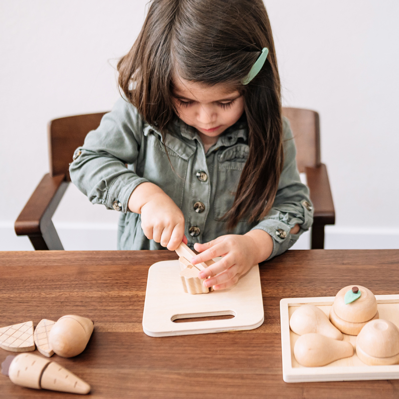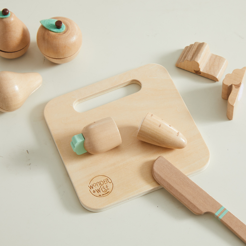 Let’s lay it all our on the table—with our delectable Table it Fruits & Veggies Play Food. Includes 12 pieces; cuttable apple, avocado, carrot, pear and broccoli plus pretend knife and cutting board, which can all be stored in the included paper container. Pair with our Table it Kitchen and our other play food sets to cook up a special meal. No matter how you slice and dice it, it always results in fun.