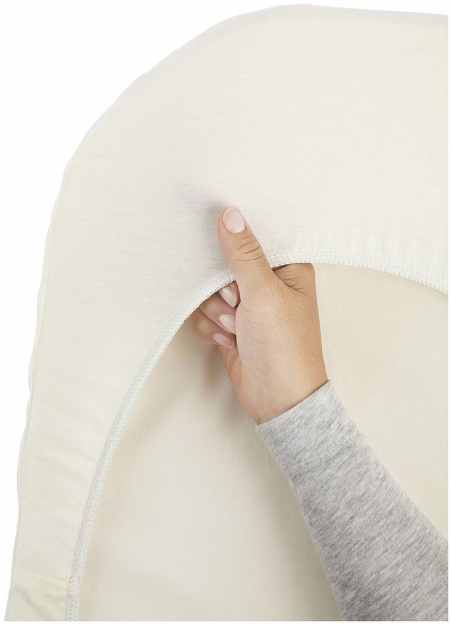 The BabyBjörn Cradle fitted sheet is made from organic cotton. The fabric is guaranteed free from hazardous substances and will not trigger allergies. The sheet is tailored to fit the mattress and stays stretched and held in place by elastic bands. Easy to take off and machine-wash. The textiles closest to the child have been tested and approved in accordance with Oeko-Tex Standard 100, class 1 for baby products. They are guaranteed harmless to children’s sensitive skin and will not trigger allergies.