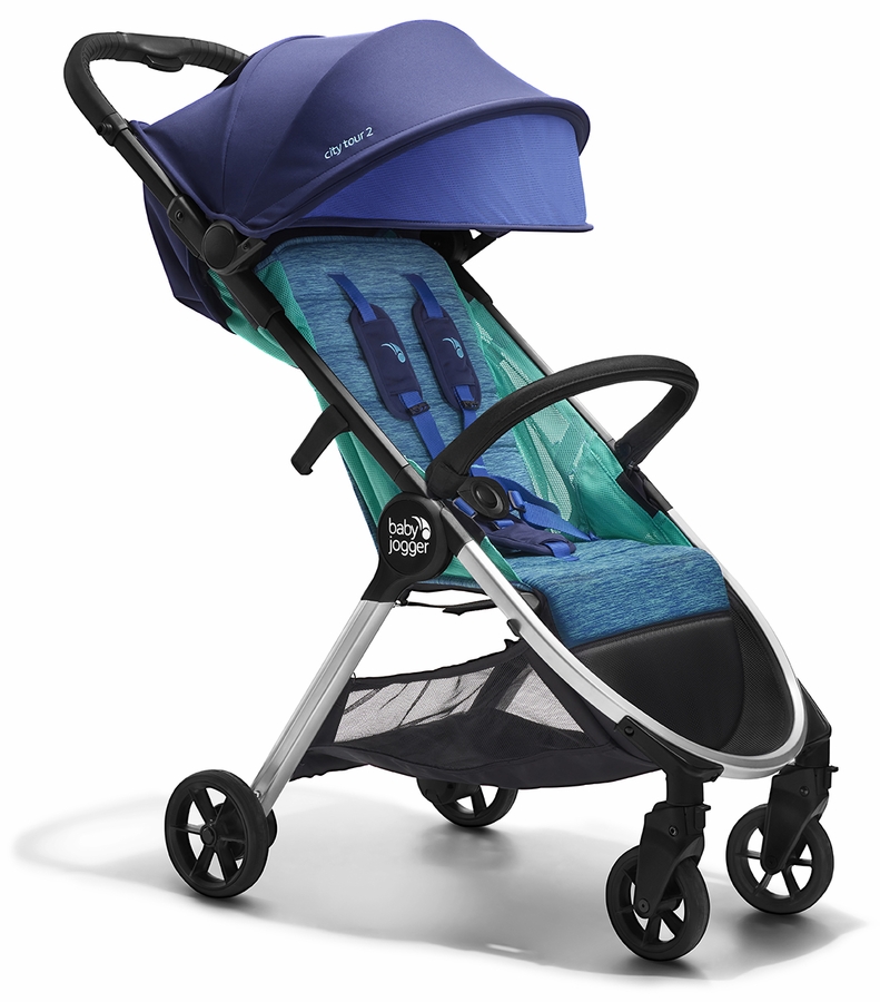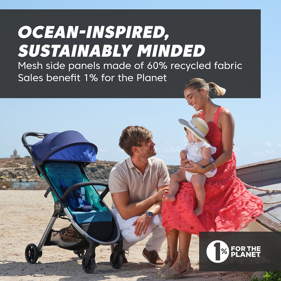 Soak in the feeling of a seaside getaway with the Baby Jogger® City Tour™ 2, Coastal. Designed with vibrant blue-toned fabrics as colorful as beachy coastlines, this ocean-inspired stroller folds up small for big adventures—85% smaller than when it's unfolded. Plus, it includes a belly bar and weather shield to keep your adventures rolling, no matter the forecast. What's more is that this stroller benefits 1% for the Planet by donating 1% of sales to environmental nonprofits.