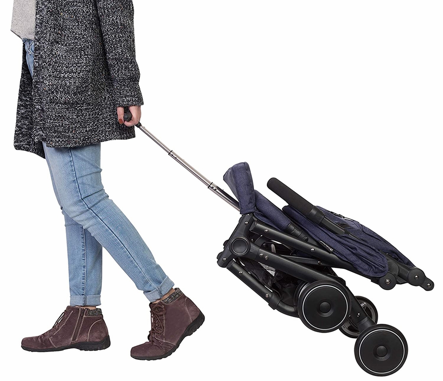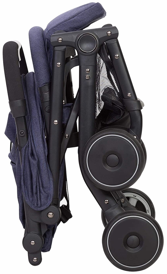 The Jetaway Plus folds compact and fits in the included tote bag for easy transport. It accommodates children up to 45 pounds.
