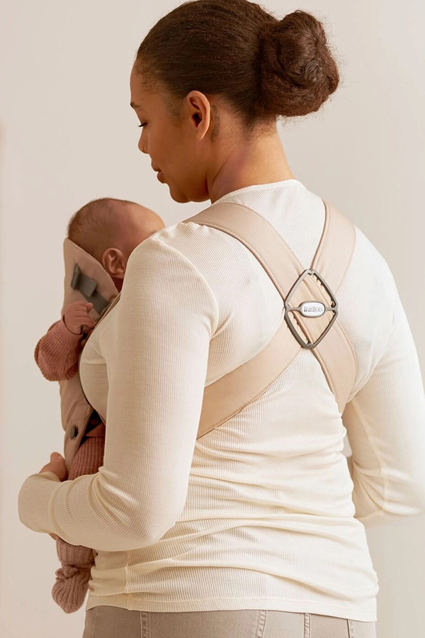 Baby Carrier Mini is very easy to use, with just a few adjustable buckles. This means you can quickly put it on, day or night, to comfort or lull your newborn to sleep. You can easily unfasten the entire front section of the baby carrier to lift out your sleeping newborn. The size and head support are fully adjustable, which means you can easily adapt Baby Carrier Mini as your newborn grows.