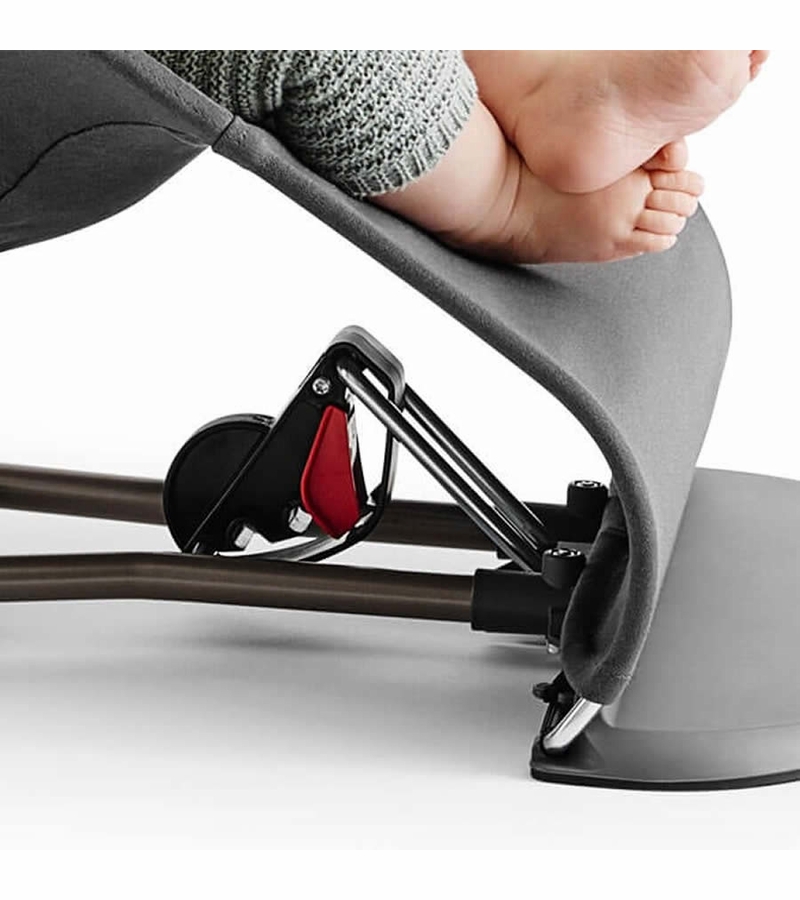 New Bouncer Bliss is a cozy place for your baby to play and rest while you get a chance to take a shower or prepare a meal. The baby bouncer rocks gently when babies kick their legs or wave their arms. No batteries needed - the baby bouncer runs on pure fun! Playing in the baby bouncer also helps your baby develop motor skills and balance. Bouncer Bliss can be used for newborns and up to the age of two. - Award-winning baby bouncer in a new design: A gray base and frame give a soft look. The single-color mesh fabric creates a luxurious feeling and makes an attractive addition to your home.