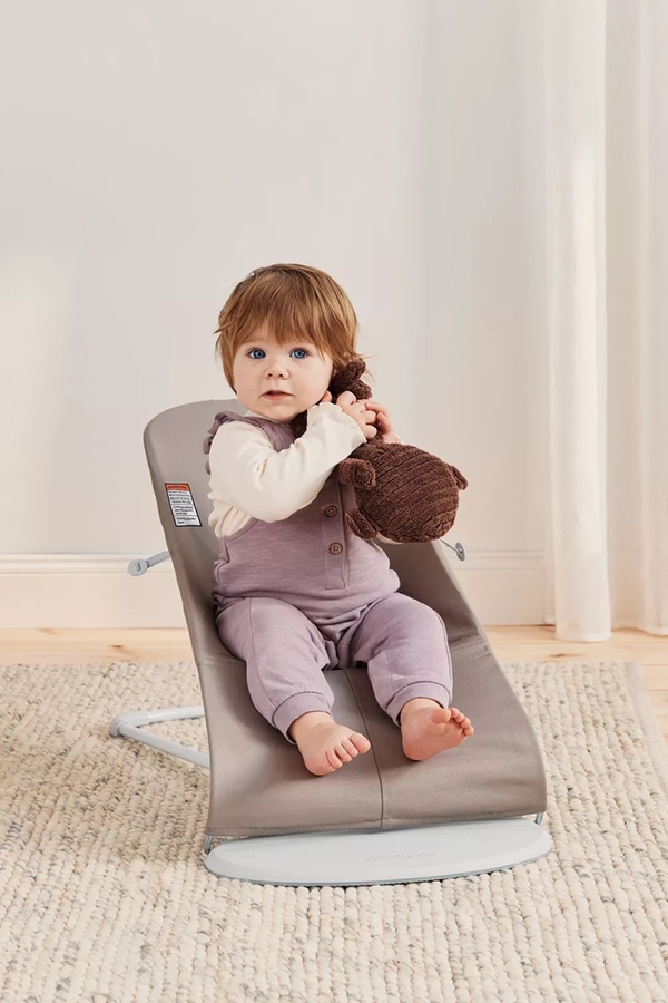New Bouncer Bliss is a cozy place for your baby to play and rest while you get a chance to take a shower or prepare a meal. The baby bouncer rocks gently when babies kick their legs or wave their arms. No batteries needed - the baby bouncer runs on pure fun! Playing in the baby bouncer also helps your baby develop motor skills and balance. Bouncer Bliss can be used for newborns and up to the age of two. - Award-winning baby bouncer in a new design: A gray base and frame give a soft look. The single-color mesh fabric creates a luxurious feeling and makes an attractive addition to your home.