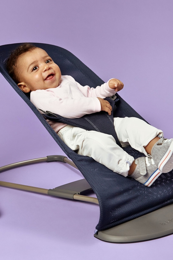 • Award-winning baby bouncer in a new design: A gray base and frame give a soft look. The single-color mesh fabric creates a luxurious feeling and makes an attractive addition to your home.