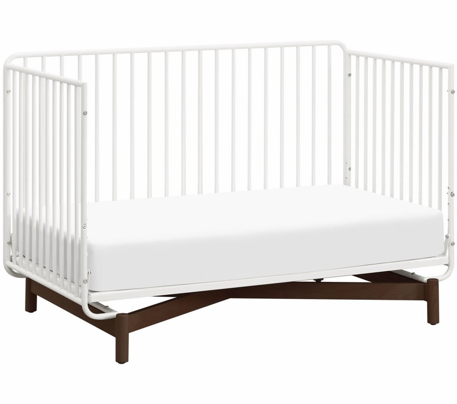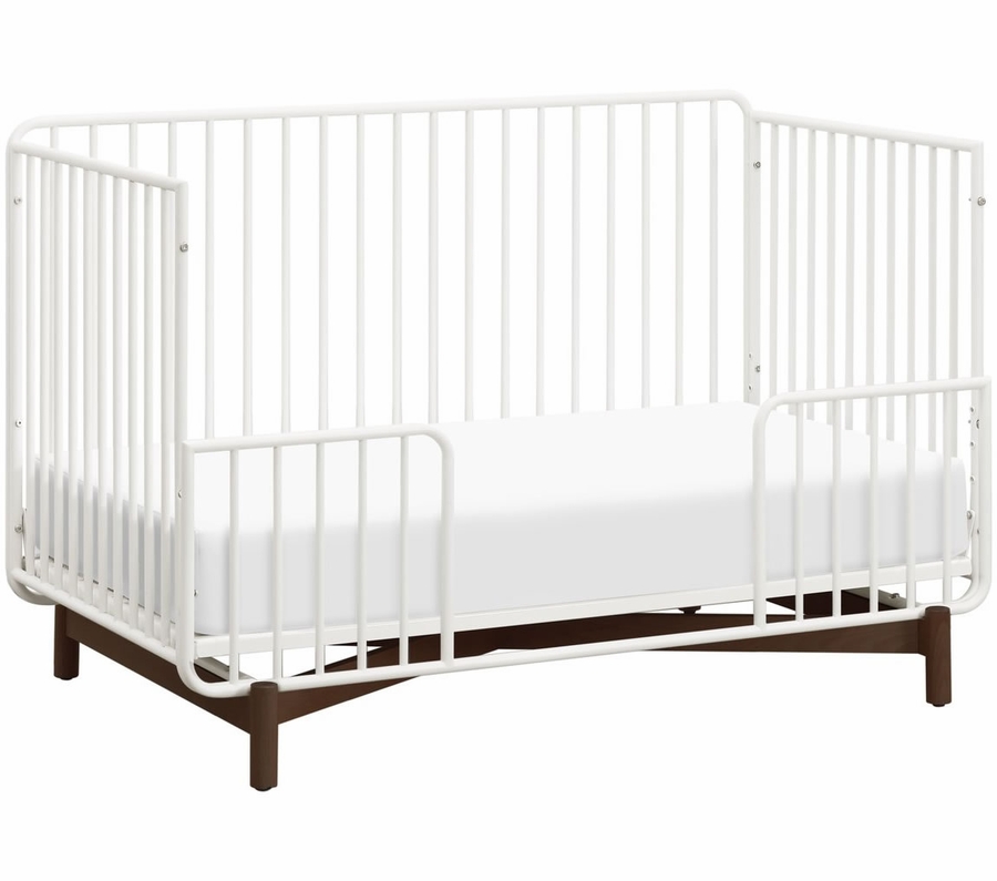 Elevate your modern nursery style with the mid-century modern Bixby Convertible Metal Crib. Combining materials with an airy metal frame and a beech wood base, the Bixby delivers a distinctly modern, yet warm aesthetic, and a new take on the traditional metal crib. Built to grow alongside your stylish babe, the Bixby includes a matching metal toddler bed conversion kit to seamlessly convert from crib to toddler bed to daybed.