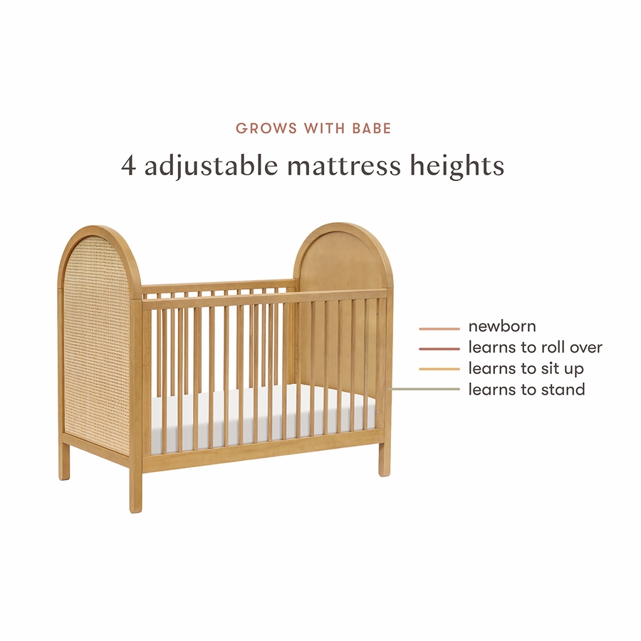 - GROWS WITH BABE: The low-profile design allows you to easily put a newborn to rest. And with four adjustable mattress positions, you can lower the mattress height as babe learns to sit and stand.