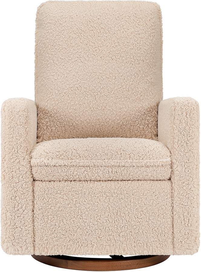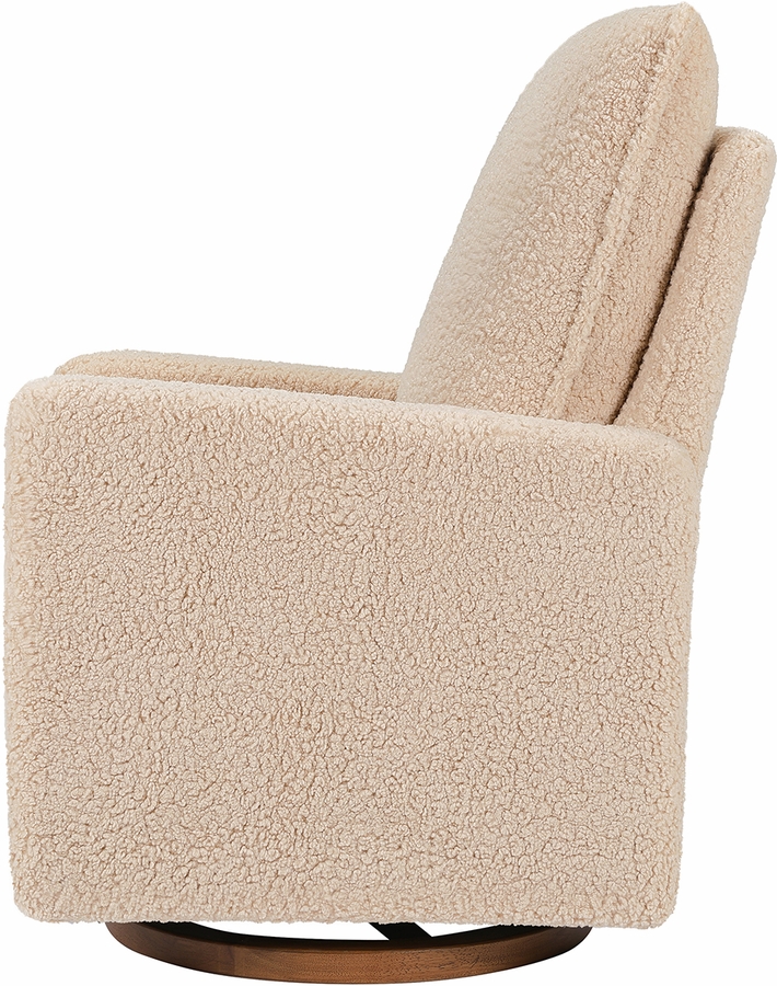 The Cali Pillowback Swivel Glider has been designed for mamas and papas with a high plush pillowback for head and neck support. The smooth gliding, 360-degree swivel base allows you to gently lull your babe to sleep. It's a stylish and comfortable choice for the modern nursery that's upholstered by hand in texture-rich shearling fabric to complement the dark wood base for a subtle touch of luxury.