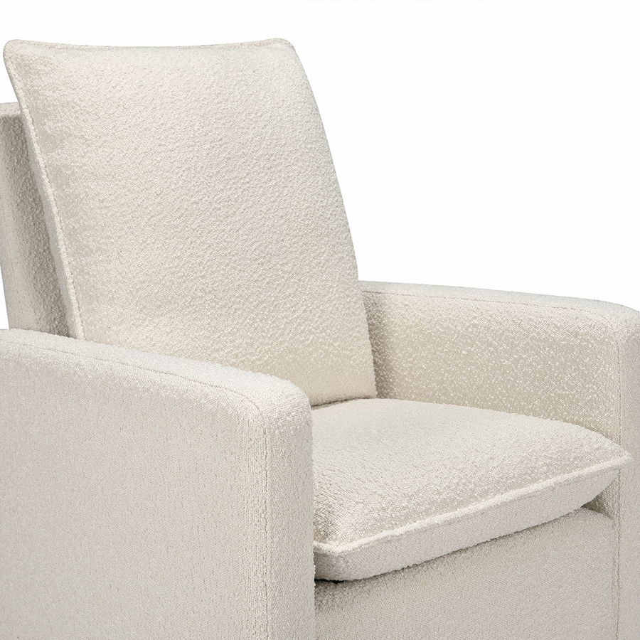 - PLUSH CONTEMPORARY GLIDER: Relax into the Cali Swivel Glider with a plush high pillowback that provides extra neck support and is upholstered by hand in texture-rich boucle fabric.