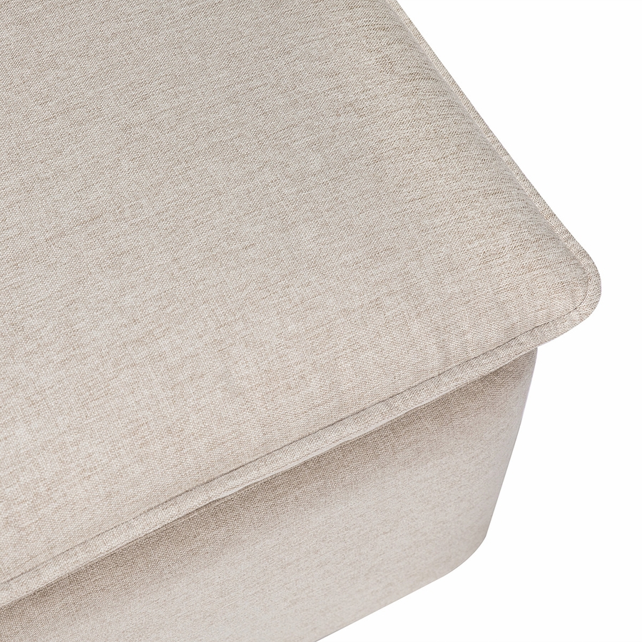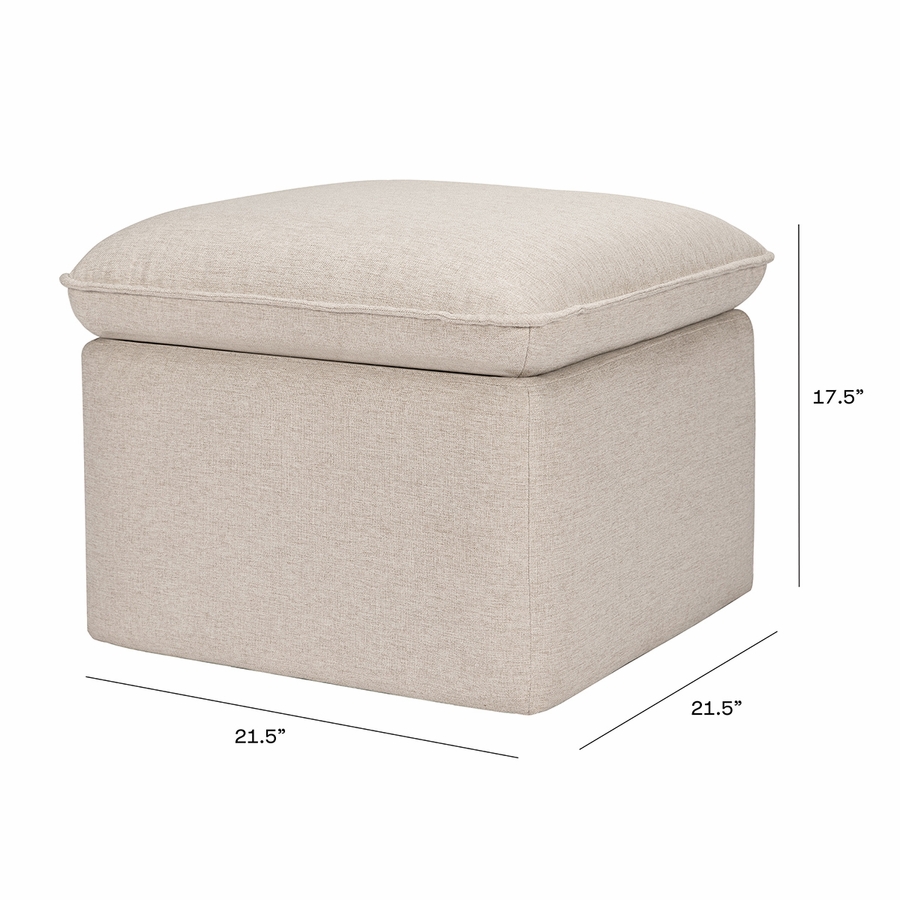 The Cali Storage Ottoman is the perfect blend of style and function. This versatile piece has ample storage for all your baby's extra toys, blankets and more. The easy to lift lid is supported by a soft open and close mechanism to help prevent little fingers getting caught. Upholstered by hand in our eco-performance fabric, this trendy ottoman can be paired with the Cali Swivel Glider to create a statement piece in your nursery or home.