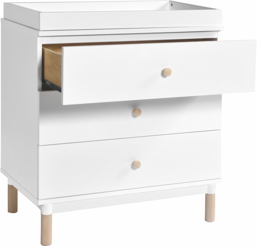 Lighten up your nursery with the playful Gelato 3-drawer Dresser. Versatile and customizable with a removable changing tray and optional additional colored feet and knobs. Three spacious, smooth-glide drawers provide ample space for a growing babe's wardrobe. Pair it with the Gelato 4-in-1 Convertible Crib for a Scandi-design inspired nursery.