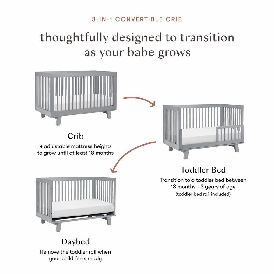 Babyletto Hudson 3-in-1 Convertible Crib with Toddler Bed Conversion Kit - Grey Finish