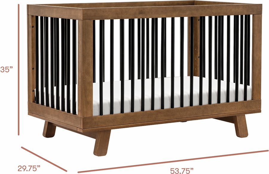 Babyletto Hudson 3-in-1 Convertible Crib with Toddler Bed Conversion Kit - Natural Walnut / Black