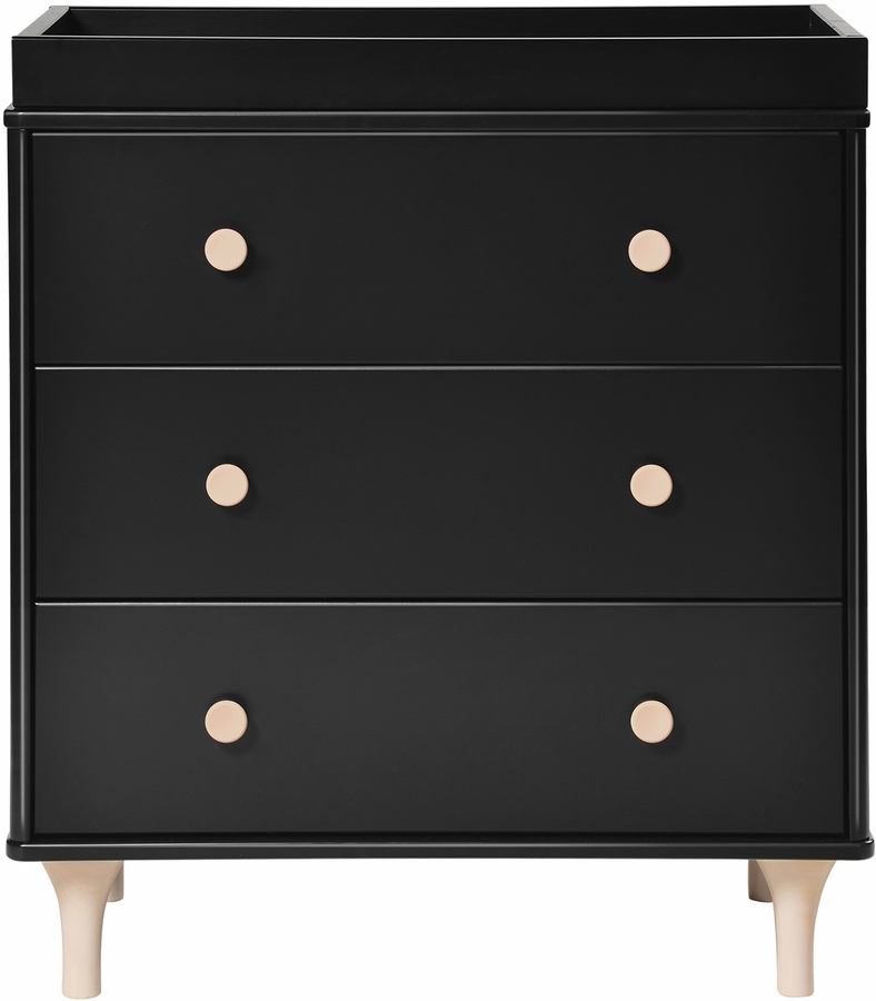 Enjoy the playful modern design of the Lolly 3-Drawer Changer Dresser! With natural curves and delicate natural feet that compliments the Lolly 3-in-1 Convertible Crib. Designed especially for the nursery with an included removable changing tray, smooth-glide drawers, hidden hardware, and included anti-tip kit.