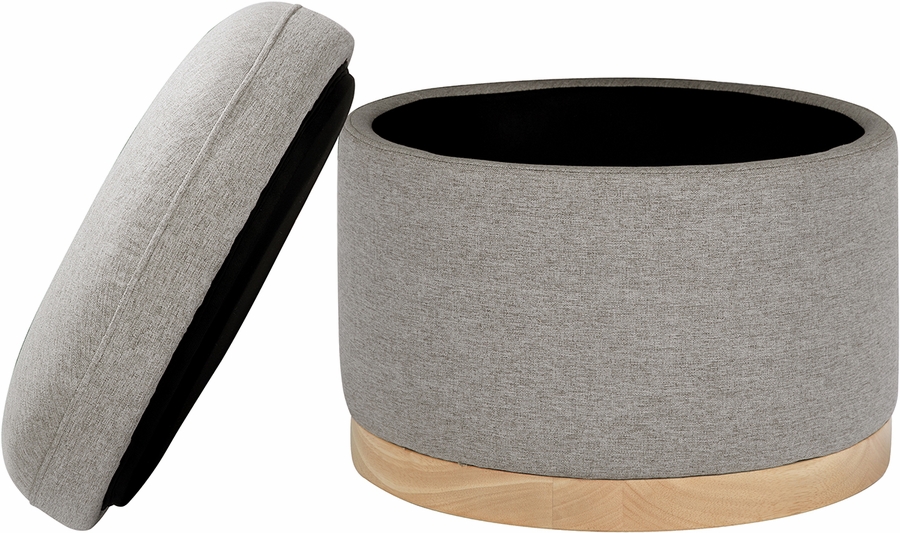 - AMPLE STORAGE: This ottoman is equal parts style and function with its light wood base and storage space for all those extra blankets and toys.