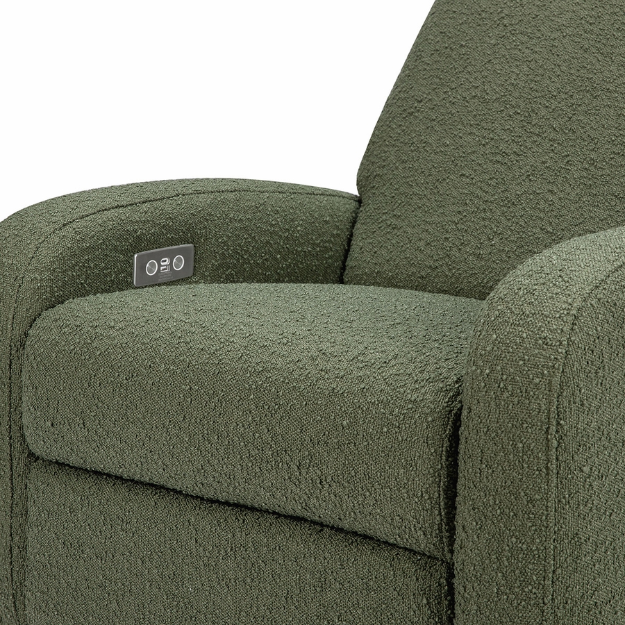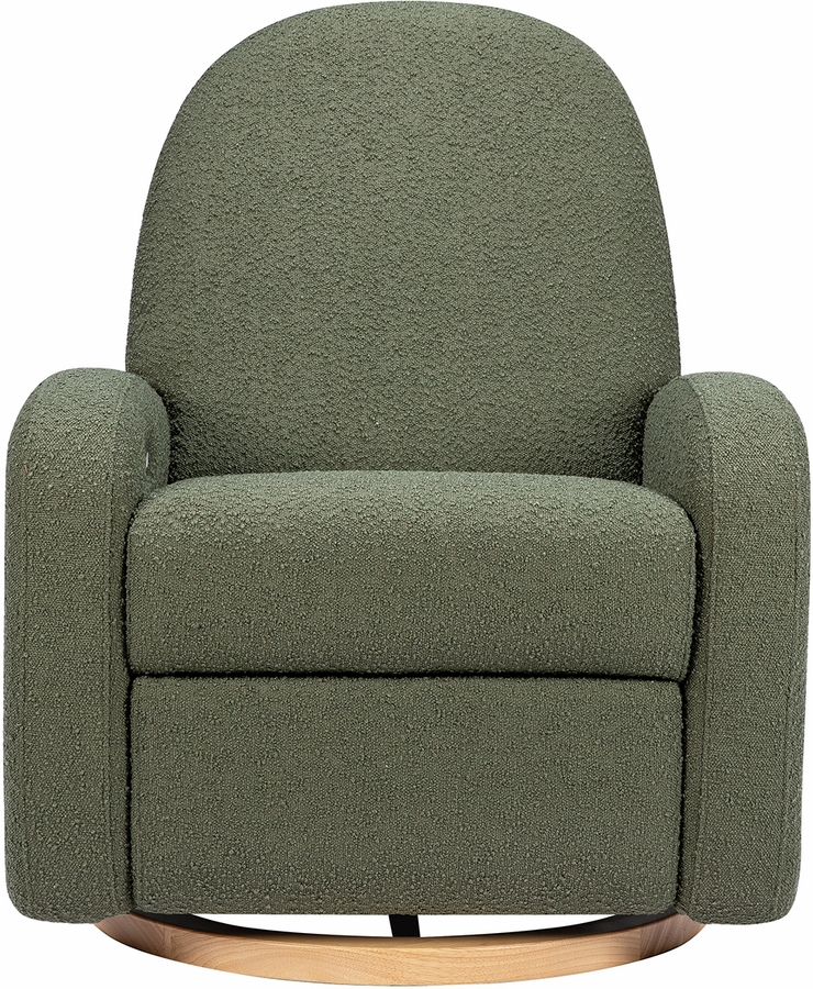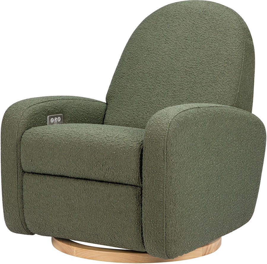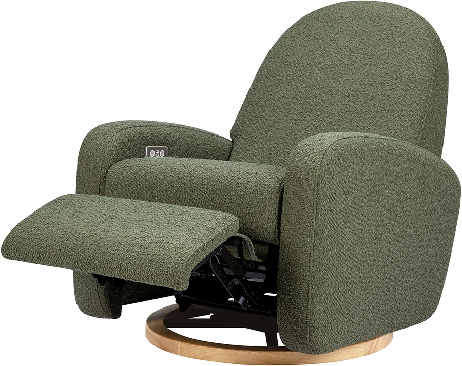 Babyletto Nami Electronic Swivel Glider Recliner w/ USB - Olive Boucle w/ Light Wood Base
