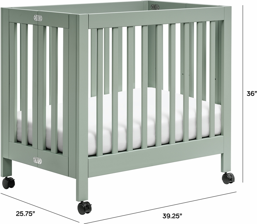 - UNIVERSAL MATTRESS FIT: The Origami is a standard mini size crib which includes a 1" waterproof mattress pad. We recommend additional support with our Pure by babyletto hypoallergenic and eco-conscious mini crib mattress (37" x 23.5").