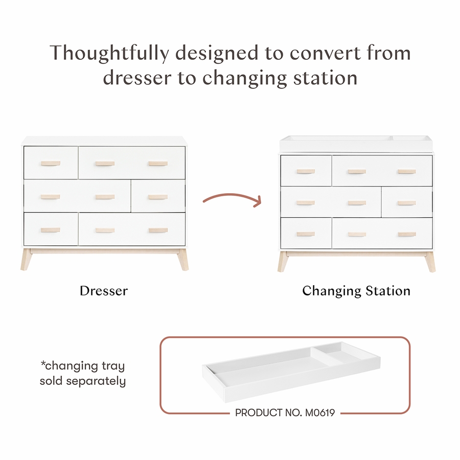 • SPACIOUS & STURDY: There's a place for all of babe's outfits with three large drawers and three smaller drawers for organizing accessories with improved thick and sturdy drawer bottoms. For increased versatility and convenience, add a removable changing tray for the early years (#M0619 sold separately).