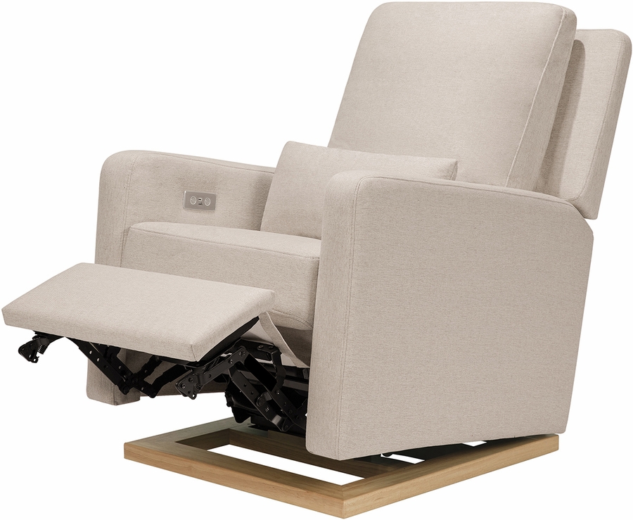 Babyletto Sigi Electronic Glider Recliner w/USB - Performance Beach Eco-Weave w/Light Wood Base