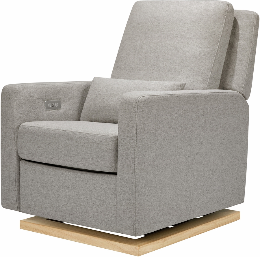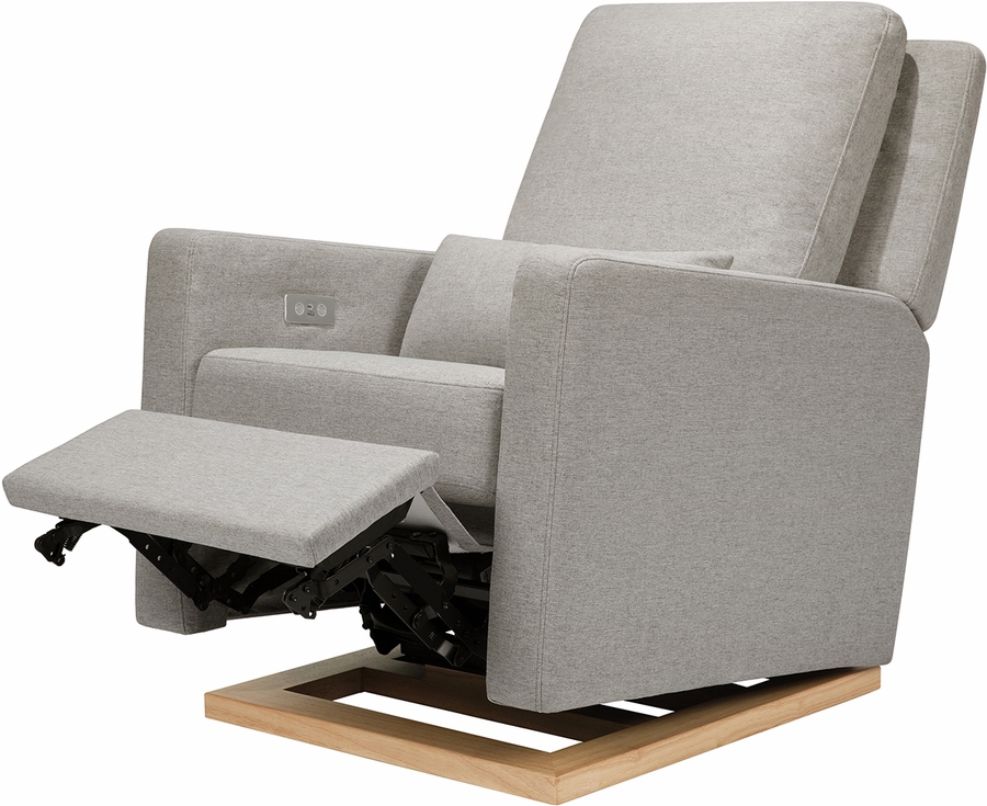The Sigi Glider Recliner is a stylish choice with its crisp, modern design and comfortable seat on a light wood base. Effortlessly glide back and forth in an upright position to rock your baby to sleep, or lean back and relax at the touch of a button with this recliner's quiet electronic control button. Upholstered by hand in our eco-performance fabric that is stain resistant, water repellent, and made with at least 30% recycled fiber, it is a more sustainable choice for your baby and home.