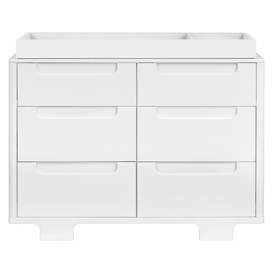 Designed to perfectly match the Yuzu 8-in-1 All-Stages Crib, this dresser effortlessly blends style and practicality. With its adorable arched feet, gentle curved corners, and six roomy drawers, it offers ample storage space for all your baby's essentials. Plus, no matter your nursery's vibe—classic, modern, or eclectic—this versatile dresser adds a touch of charm as the ultimate statement piece. Get ready to fall in love with this must-have addition to your nursery!