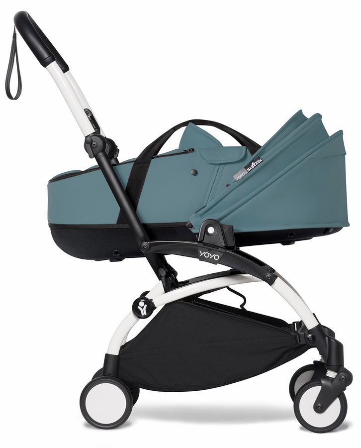 Babyzen YOYO2 Ultra Compact Complete 6+ Stroller with Bassinet Bundle - White/Aqua