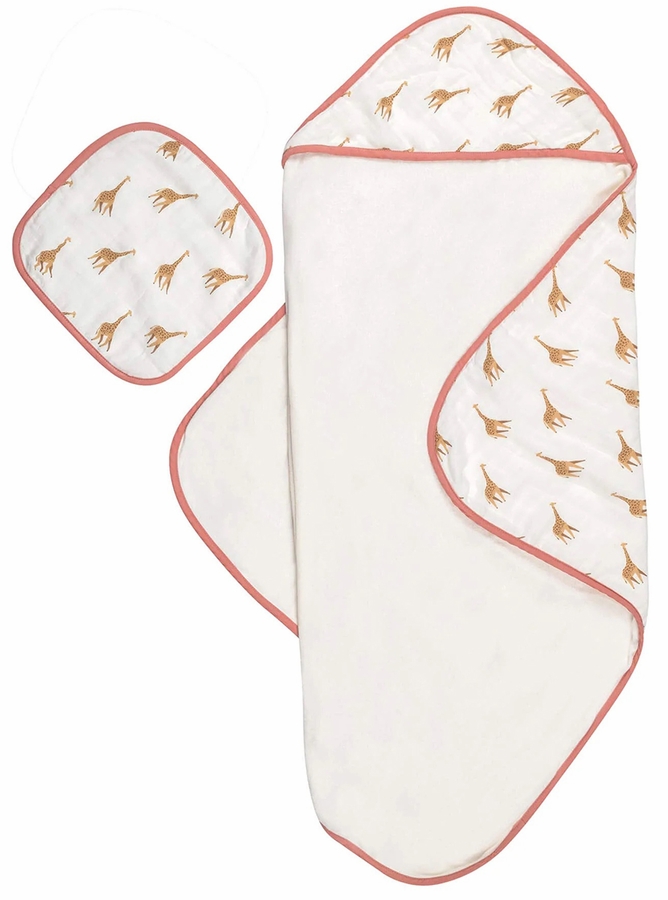 Bamboo Little Hooded Baby Towel & Washcloth Set - Giraffe