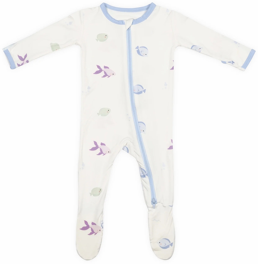 Bamboo Little Zippered Footie - Blue Fish (0-3m)