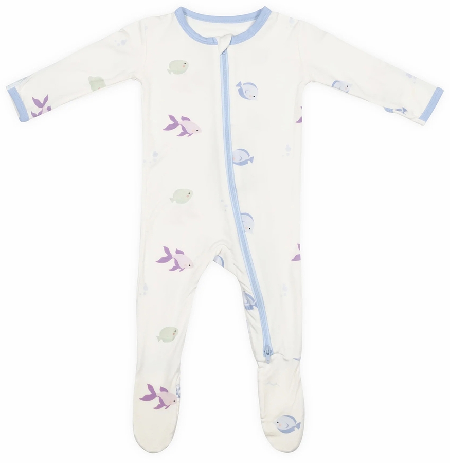 Bamboo Little Zippered Footie - Blue Fish (3-6m)