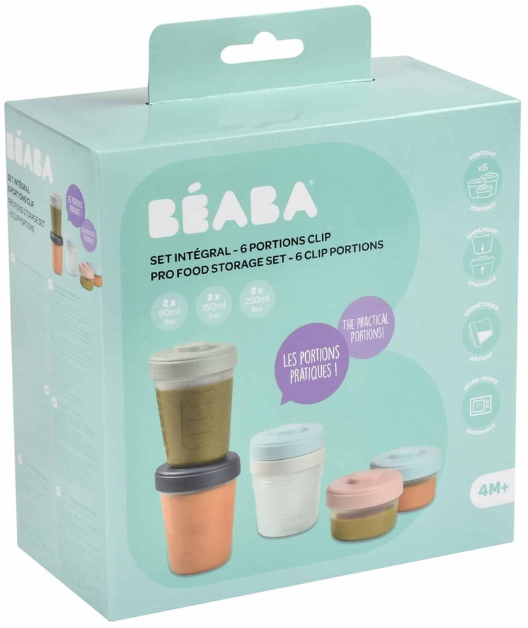 Featuring a stackable and interlocking design, our BEABA Baby Food Clip Containers make storing & transporting baby’s meals easy. Store anything from purees to finger foods to dry snacks! Use the stack and lock feature for organizing daily meals, or grouping together meals for grandparents or babysitter when they’re watching your little one. These portions are 100% airtight thanks to the screw thread lid, which means they’ll even hold liquids like breast milk, and you can slide them into the nursery bag with no risk of leakage. Store them in your fridge, freezer, or cabinet, and defrost and reheat (without the lid) in the microwave, our Babycook bowl or our BabyMilk Bottle Warmer.