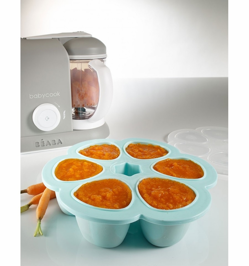 Beaba Multiportions is designed for freezing and storing a la carte foods for baby. Multiportions is comprised of six individual 5 oz portions. Made from high quality, platinum grade silicone, a single portion of frozen food is easy to pop out. These lightweight storage containers are freezer, microwave, oven and dishwasher safe. This product is the perfect complement for Babycook allowing you to make the freshest and best food for baby ahead of time.