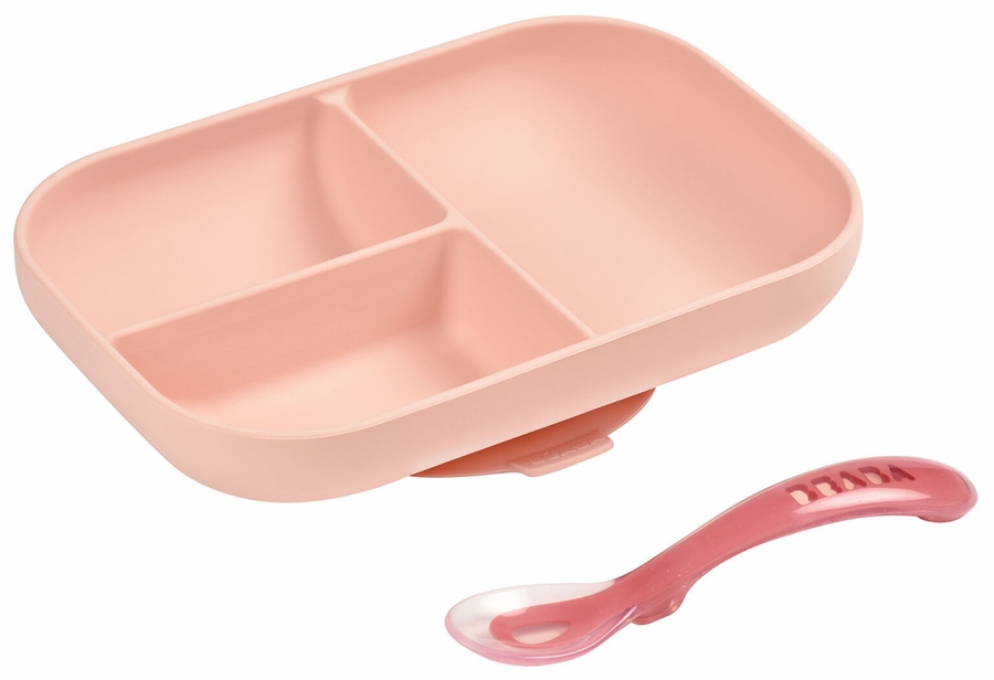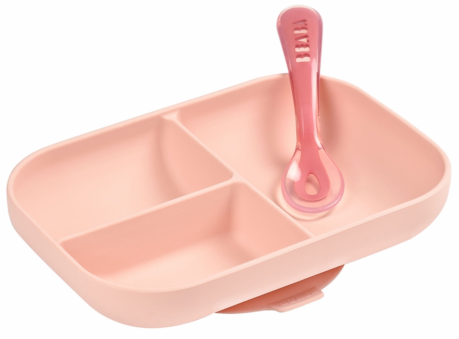 BEABA Silicone Divided Suction Plate And Spoon Set - Rose
