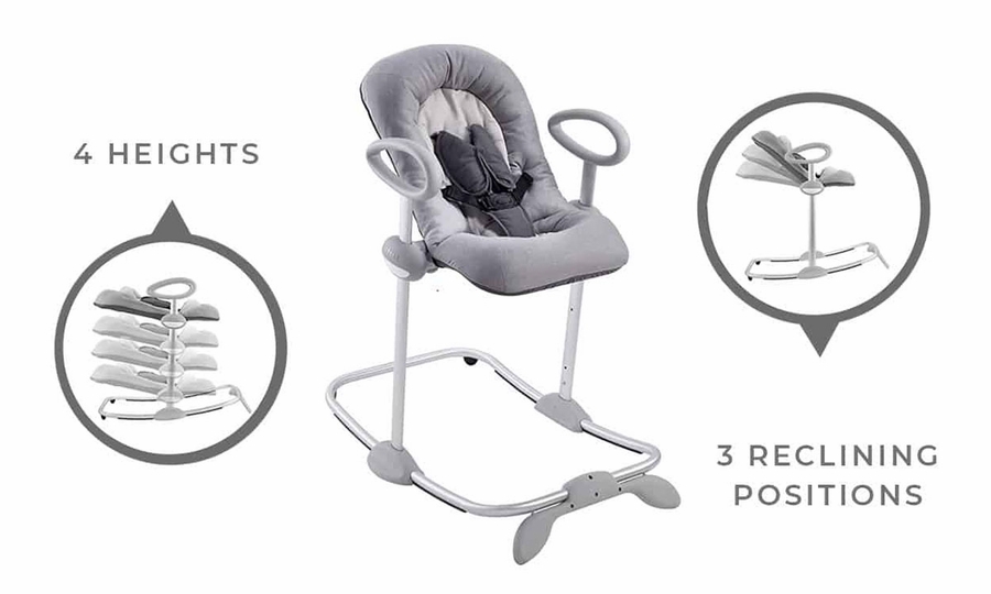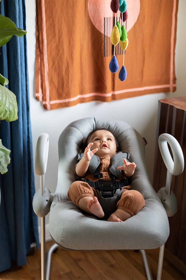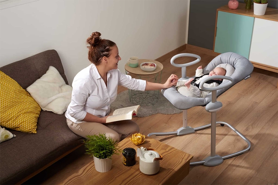 The number one baby Rocker in France is now available in North America! The BEABA Up & Down Baby Rocker is a stylish, modern rocker with 4 adjustable heights and 3 reclining positions, allowing baby to share every moment with you and participate in all the family activities. Most rockers place baby on the floor. With its adjustable height, now you can include your little one in all the family activities so they don’t feel left out! Have them sit with you at the dinner table, in the garden or even on the sofa for story time. Perfect for keeping baby off the floor and out of reach of the dog or the toddler when desired. It features a rocking function with an integrated locking system that ensures baby stays secure – perfect for lounging, socializing, and keeping them close!