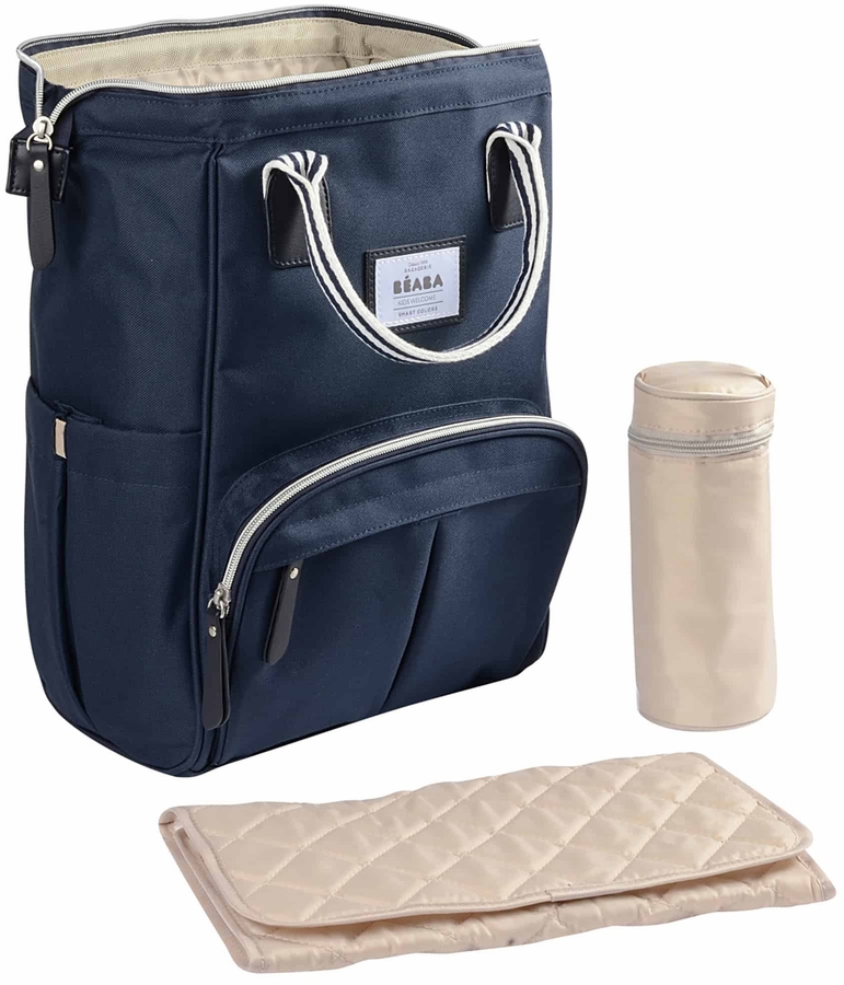 The BEABA Wellington Backpack is so impressively convenient you’ll question everything you thought you knew about a good diaper bag. This trendy diaper backpack comes in a gender-neutral style that can be used by both mom and dad. Thoughtfully designed, it features a large, structured doctor bag opening (hello, easy access!) and wide padded straps that provide maximum shoulder comfort on long days out. Use the roomy main interior compartment as a space for diapers and dirty laundry, and the other 8 interior and exterior pockets to store baby’s essentials (bottles, toys, formula) and your own gear (phone, keys, wallet, mask, check!). Comes with an isothermal pouch, padded changing mat, and stroller straps for the ultimate on the go day with baby. Oh, and did we mention it’s water-resistant? We’ll always opt for sunshine, but it’s good to know it can also handle the drizzle.